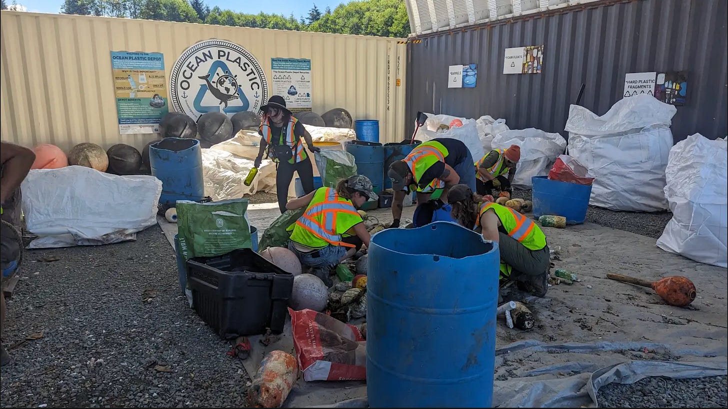 圖 1 Ocean Legacy 團隊於2023年的 Clean Coast Clean Waters(CCCW)清理行動中,進行回收材料分類作業